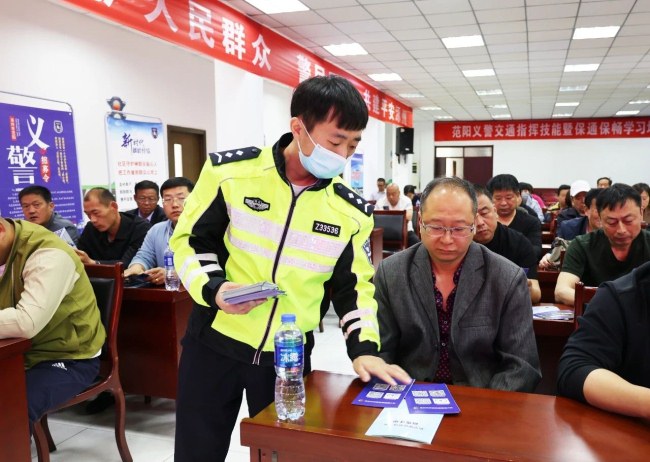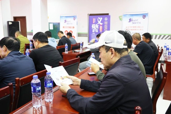 培訓中,民警就反詐宣傳、交通疏導要點進行專題培訓并向現(xiàn)場義警發(fā)放宣傳資料。