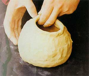 泥條盤筑 泥條法是通過泥條來構(gòu)筑成型的一種盤筑技法。泥條可以是經(jīng)手搓成,也可以通過壓泥條工具擠壓成型。搓泥條時(shí)要把握好你的可塑性,以免在盤筑形狀時(shí)產(chǎn)生開裂。如果你想以泥條盤筑法一次完成一件大作品或一件很復(fù)雜的作品,是較困難的。因?yàn)樽髌芬幸欢◤?qiáng)度才能使你繼續(xù)盤高,而且連接部位要保持一定的濕度,才能保持胚體之間的粘接。在盤筑過程中,要把握好泥的干濕度,注意掌握好造型的輪廓線。以泥條盤筑法創(chuàng)作的作品特點(diǎn)是古樸、流暢,富于變化。