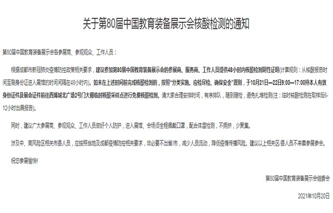 2021年10月23-25日第80屆中國教育裝備展示會將在天府之城成都·中國西部國際博覽城盛大開幕。
